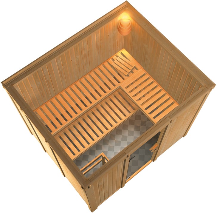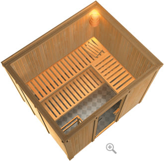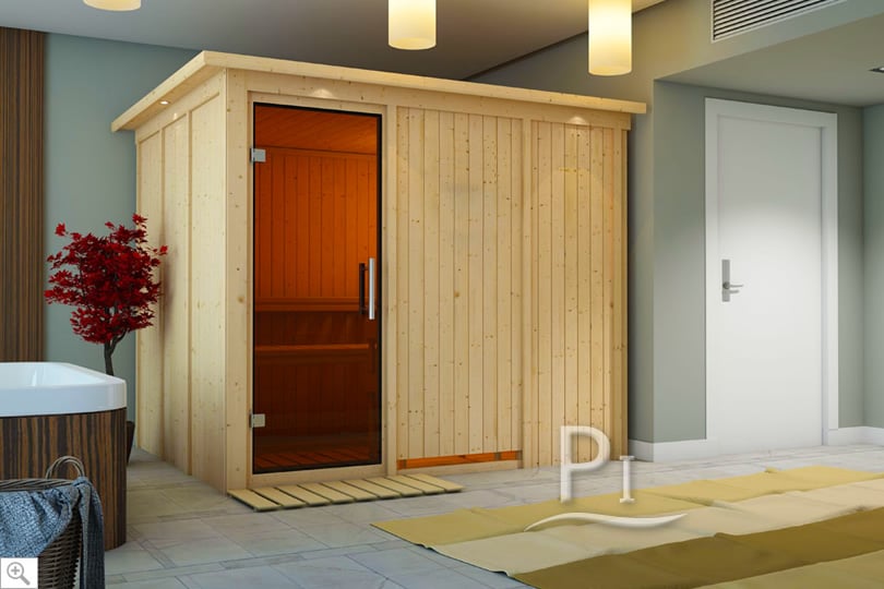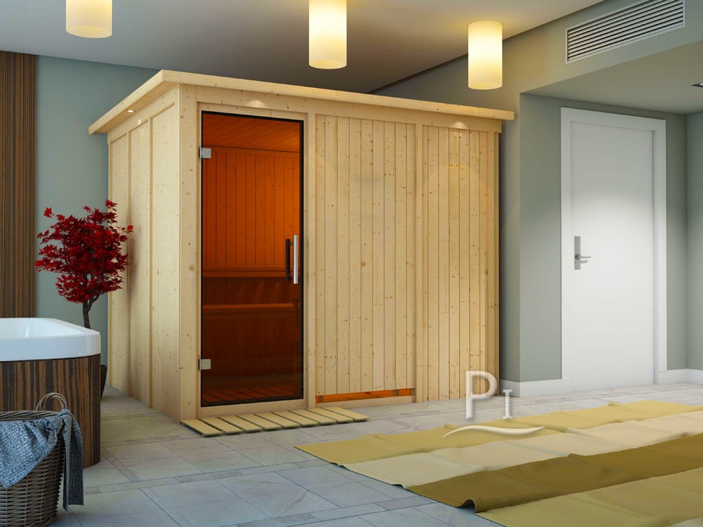 Les saunas aux parois de 68 mm d'épaisseur sont réalisés en bois de sapin nordique et conçus spécialement pour une utilisation en habitations privées.